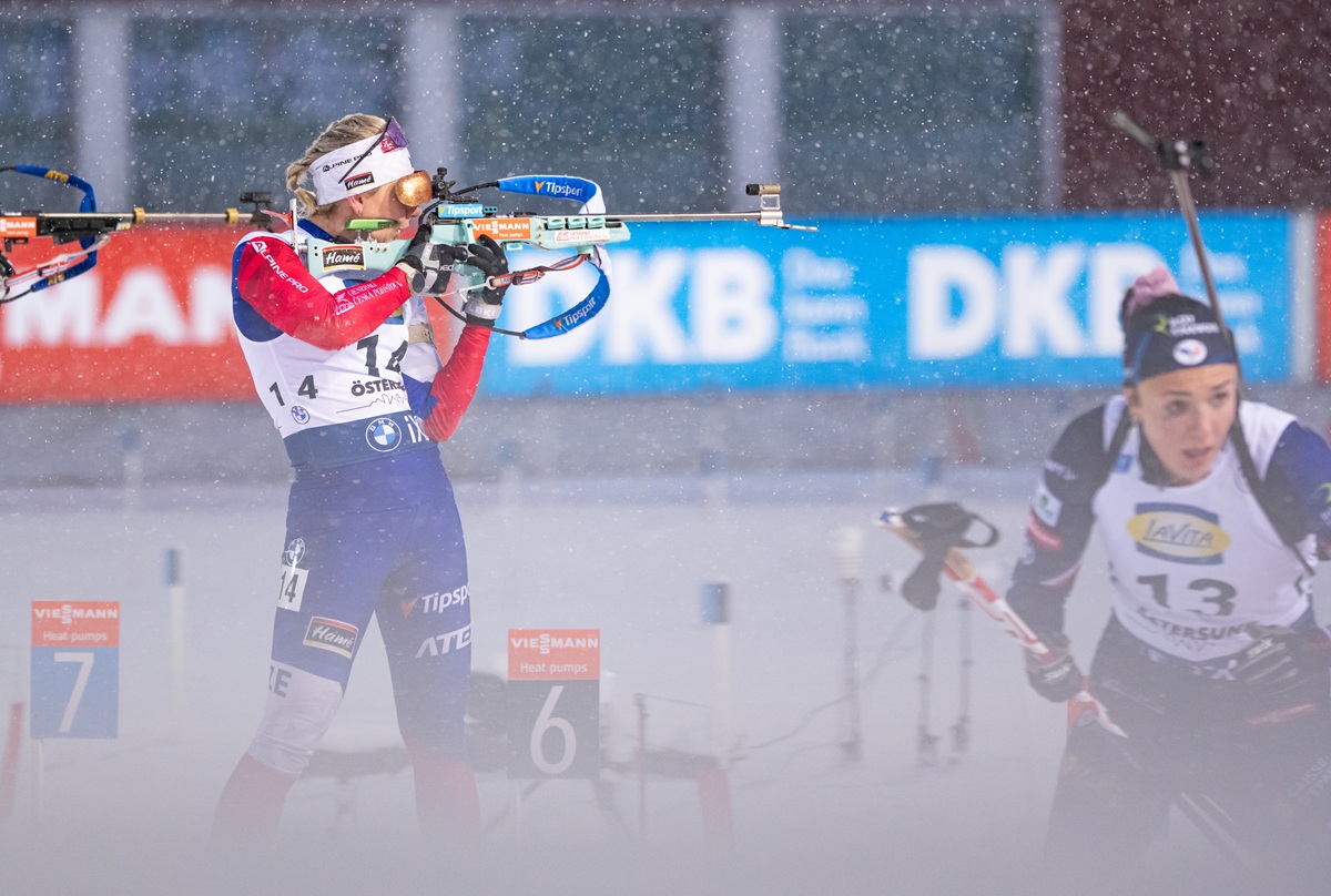 Pořadí: 1. Wiererová (It.) 43:08,0 (2 tr. minuty), 2. Leinamová (Fin.) +0,3 (1), 3. Benedová (Fr.) +8,4 (1), 4. Jeanmonnotová (Fr.) +31,3 (2), 5. H. Öbergová (Švéd.) +34,3 (3), 6. Cloetensová (Belg.) +37,7 (1); 24. Voborníková +2:53,7 (3), 44. Davidová +4:36,0 (6), 64. Vinklárková +5:53,3 (4), 67. Jislová +6:06,0 (3), 73. Charvátová +6:51,5 (8).